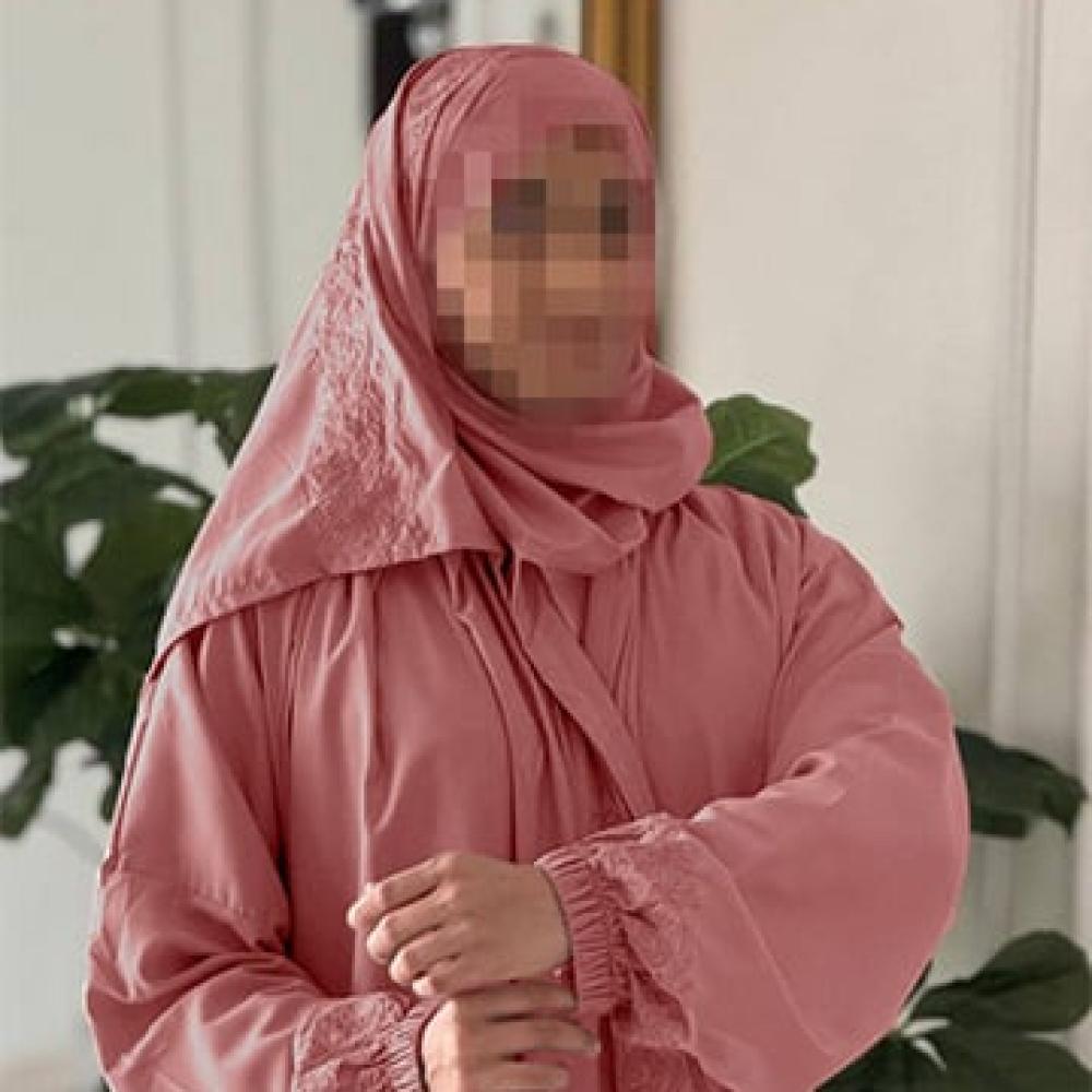 - إسدال باللون الارجوانى ذو أكمام و طرحة متصلة ، و مزين بتطريز زهرة الارجوان البديعة